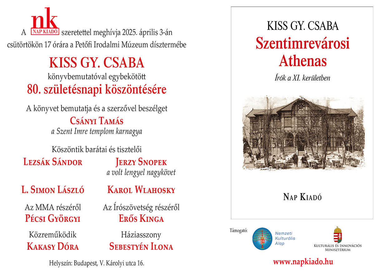 A cifraszűr A cigányzenekar múltja A csodabárány A Dunánál A Duna-partról A felejtés angyala A fény rétegei A hajós hazatérése A haza mint kert A hullám taraja A humor a teljes igazság A jogilag egységes jobbágyságról A képzelelet emléke A Komp-ország poétája A kor falára A kőgörgető A lélek stációi A magyar forradalomról A magyar honfoglalás kútfői A magyar királyi nemesi felkelés A magyar királyság pénzügyei és gazdaságpolitikája Károly Róbert korában A magyar nemzetségek a 14. században A magyar nyelv teljes szótára A magyar nyelvújítás szótára A megtalált időből A megvallás A metafizikus költészetről A minőség forradalmára A mítosz mítosza A Nagyboldogasszony úttól a Ménesi útig A nagyúr A napsütötte sáv A nyugati igény A pálya szélén A parasztélet rendje A pátriárka A porlepte énekes A puszta, télen A rézkortól a hunokig A szalmabábuk lázadása A székely írás története A szétzilált nemzet A törvény és az üdv metszéspontjában A törzs szavai A varázsló halála A vén budai hársfák A véradó A világosság lobogója alatt A virágnak agyara van Abaligettől Abscheu Ady Endre Ágh István Ágh István életműsorozat Ahogy lehet Álarcok Alföldy Jenő Aliz már nem lakik itt Álltam a hídon Altmann Julianna Ambrus Lajos Amerikai magyar szigetvilágban Anyám balladát táncol Apa és fia Ápriliy Lajos emlékezete Áprily Lajos Aranyosszék, Marosszék Árapály Árokból jön a törpe Az apostol Az átkozott költő Az élet álom Az elhalasztott igazság Az elsodort író Az eltévedt lovas Az elűzött álom Az én országom Az európai népek eredete Az Irgalom hegyén Az olvasó fényűzése 1-3. Azonosságtudat, nemzet, irodalom Babits Mihály Baka István Baka István emlékezete Ballagi Mór Bánffy Miklós Bánffy Miklós emlékezete Bene regi - A király javára Beniczky Gáspár Benkő Attila Benkő Elek Benkő Samu Bibó nyomában Biczó Piroska Bolla Ilona Borbély Béla Bóta Gábor Búcsú barátaimtól Buda Ferenc Burány Béla Buzás Gergely Bűnfenyítők és befogottak Catalogus Fontium Cukorkásüveg Csanádi Imre Csanási Imre emlékezete Csángómagyar falvak Csáth Géza Csík-, Kászon- és Gyergyószék Csillag a máglyán Csokits János Csoóri Sándor Csorba Emánuel Csűrös Miklós Csűry Bálint Dallos Szilvia Dalos László Dávid Gyula Deák László Die Revolution der Qualität Dohnányi Ernő Domokos Mátyás Draskóczy István Dsida Jenő Egy mondat a zsarnokságról Egy tükör cserepei Egy vers Egyedül Egyéniség és valóság Éjszakai hajózás Életem túsza vagyok magam is Elveszett utak Ember az embertelenségben Emlékeim Weöres Sándorról Emlékezet Emlékkönny Én vagyok Ének a szegénységről Erdélyi József Erkölcs és rémület között Erőltetett menet Eszmélet Fáklya volt kezemben Féja Géza levelezése Fénylő Parnasszus Ferencz Győző Fodor András Fodor András emlékezete Fodor Imre Fogarassy Miklós Fojtatás Forgatások mosolya Föld, nyitott sebem Fraknói Vilmos Fraknói Vilmos Frecskay János Futás a ködben Füst Milán Füzi László Gárdonyi Géza Gazda László Gelléri Andor Endre Gelléri Andor Endre emlékezete Gombocz Zoltán Gombos Albin Görömbei András Gróh Gáspár Gyökereink Györffy István Habsburg Ottó élete és kora Hafner Zoltán Hajnali részegség Hajnali sötétben Hajnóczy Péter Hajnóczy Péter emlékezete Halhatatlan csillagok Hamvas Béla Hamvas Béla emlékezete Harangok zúgnak bennem Havon delelő szivárvány Ház a sziklák alatt Haza a magasban Hegyvidék antológia Hellenbart Gyula Helykeresések Hetedik ecloga Hívás valahonnan Hol vagy, hazám? Hóman Bálint Homlokodtól fölfelé Hornyik Miklós Horváth István Hova megy a hegy? Hunyady Sándor Hunyady Sándor emlékezete Húsvét Hűtlen jövő Így éltünk a Délvidéken II. Rákóczi Ferenc csatái Illyés Gyula In memoriam In memoriam Babits Mihály In memoriam Csáth Géza In memoriam Domokos Mátyás In memoriam Dsida Jenő In memoriam Erdélyi József In memoriam Füst Milán In memoriam Gárdonyi Géza In memoriam Illyés Gyula In memoriam Jékely Zoltán In memoriam József Attila In memoriam Juhász Gyula In memoriam Kaffka Margit In memoriam Karinthy Frigyes In memoriam Kassák Lajos In memoriam Kodolányi János In memoriam Kosztolányi Dezső In memoriam Krúdy Gyula In memoriam Mándy Iván In memoriam Márai Sándor In memoriam Mészöly Miklós In memoriam Móra Ferenc In memoriam Móricz zsigmond In memoriam Nagy Lajos In memoriam Nagy László In memoriam Nemes Nagy Ágnes In memoriam Németh László In memoriam Orbán Ottó In memoriam Ottlik Géza In memoriam Örkény István In memoriam Pap Károly In memoriam Pilinszky János In memoriam Radnóti Miklós In memoriam Sinka István In memoriam Sütő András In memoriam Szabó Dezső In memoriam Szabó Lőrinc In memoriam Szentkuthy Miklós In memoriam Tamási Áron In memoriam Tersánszky Józsi Jenő In memoriam Tóth Árpád In memoriam Tömörkény István In memoriam Vas István In memoriam Weöres Sándor Innen-onnan Írások a hipertóniáról Írjak? Ne írjak? Irodalom és nemzeti önismeret Irodalom, nemzet, harmadik út Írogató színész Írósors Jancsó Adrienne Jékely Zoltán Jelentéstan Jókai Mór József Attila József Attiláról Juhász Előd Juhász Gyula Kádár György Kaffka Margit Kálnoky László Kálnoky László emlékezete Karácsony Karácsonyi János Karády Katalin Karinthy Frigyes Kassák Lajos Kényszerleszállás Kertészgazdászati jegyzetek Kézai Simon védelmében Kiáltó szó Kidöntött fáink suttogása Királyaink emléke Kis Pintér Imre Kiss Gy. Csaba Kocsis Zoltán Kodolányi Gyula Kodolányi János Komlós Aladár Konok idő Kopaszok és hajasok világharca Korányi Kinga Kormos István Kormos István emlékezete Kós Károly Kós Károly emlékezete Kosztolányi Dezső Kótzián Katal